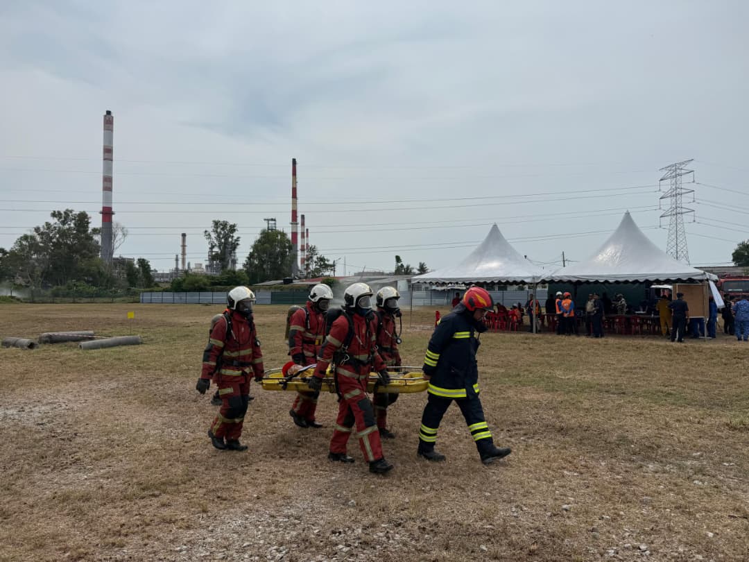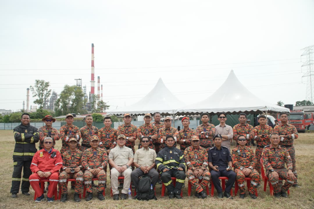 LATIH AMAL BERSAMA MENANGANI KEBAKARAN SALURAN PAIP LPG, LNG DAN TALIAN VOLTAN TINGGI TNB DI LALUAN SALURAN PAIP HENGYUAN REFINING COMPANY BERHAD, PETRONAS GAS BERHAD, TENAGA NASIONAL BERHAD DAN PS PIPELINE, PORT DICKSON