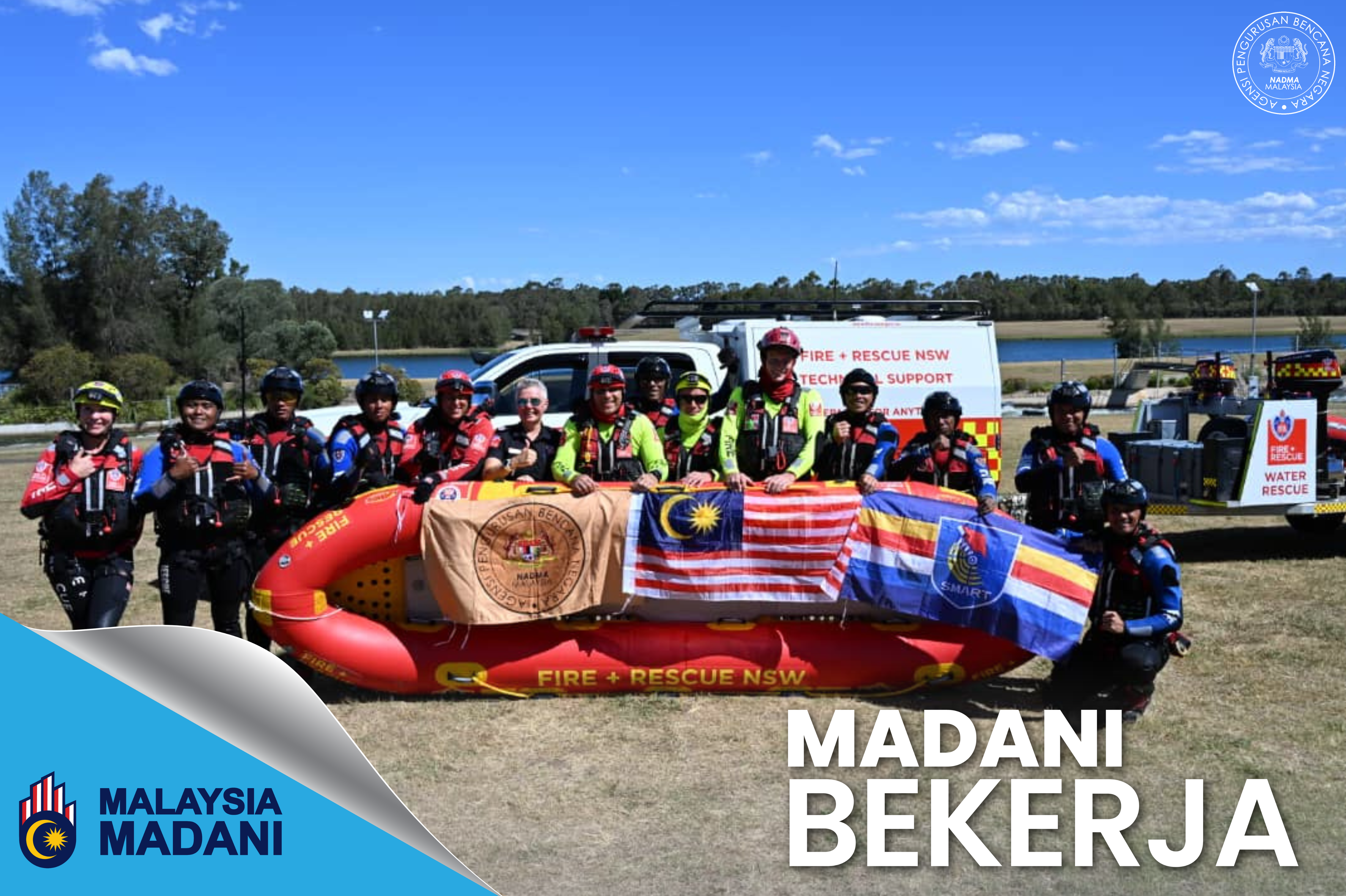 Delegasi NADMA yang terdiri dari 10 orang pegawai dan anggota telah berada di Sydney, Australia selama seminggu bagi mengikuti Swift Water Rescue Abroad Exercise serta menyertai Australasian Water Rescue Challenge (AWRC) 2025 yang menghimpunkan 10 pasukan penyelamat terdiri daripada agensi kerajaan atau sukarela yang terdapat di negara Australia.